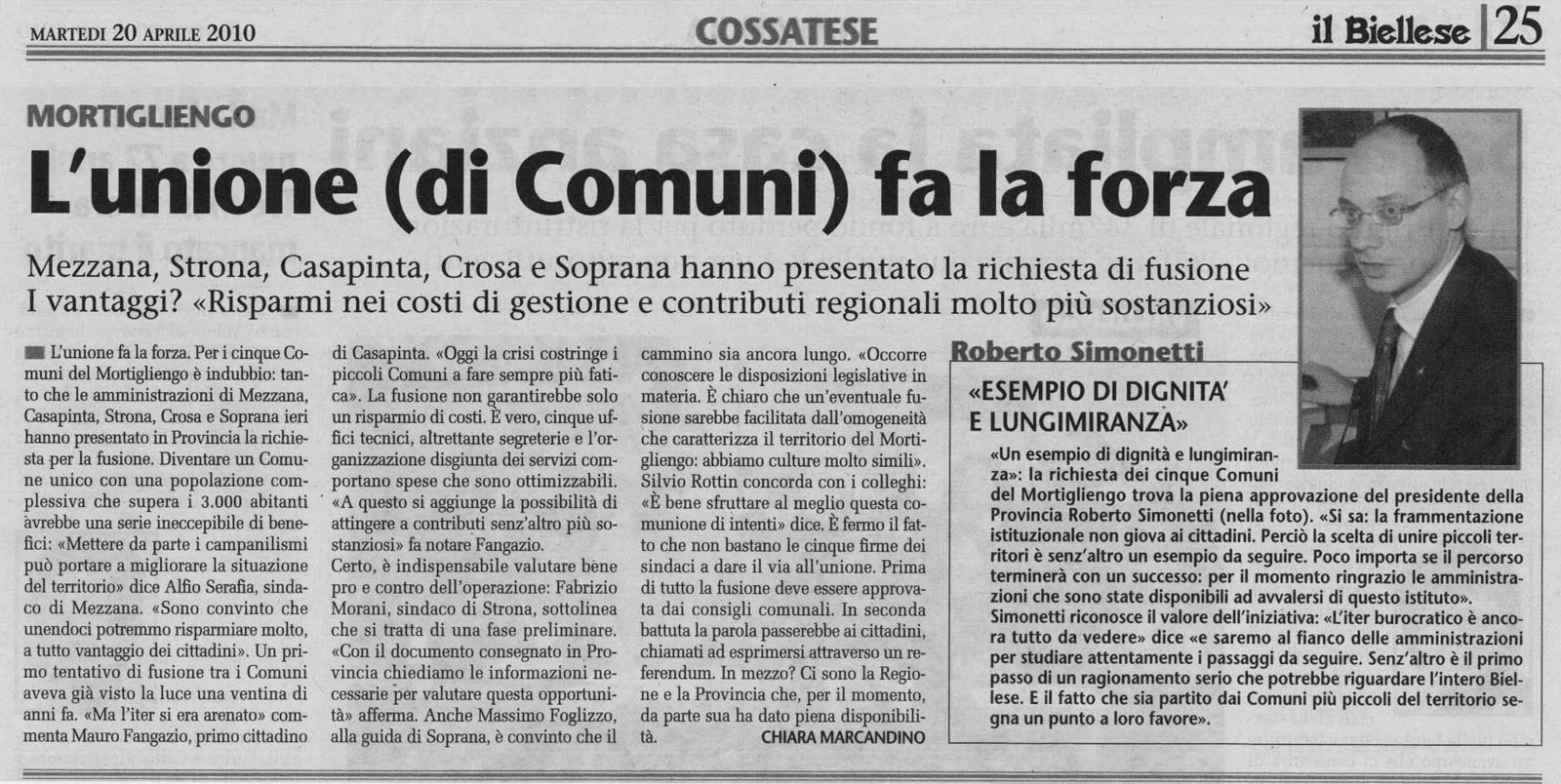 | 20/04/2010 - Il Biellese, l'unione "di Comuni" fa la forza.. |