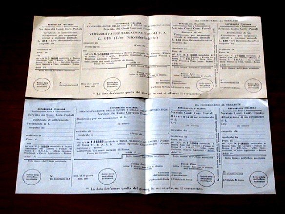 and a particular policy, which coincided with the plate booking certificate, which was maximum 620 Liras. People had to pay the amount by post bullettin. To circulate on public roads, they had to pay an obligatory annual tax of 500 to 2000 Liras, in connection with the gross weight of the goods wagon. A way to point out this information, was to use a proper measurer, which also said the measure of the rims and the capacity of the vehicle. Everything you read is written and well preserved in the archives of our Town Hall and if someone wants to give us other pieces of information or correct something in order to enrich this document, |